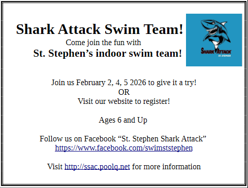 The St. Stephen Shark Attack program is designed to develop, strengthen and discover competitive swim